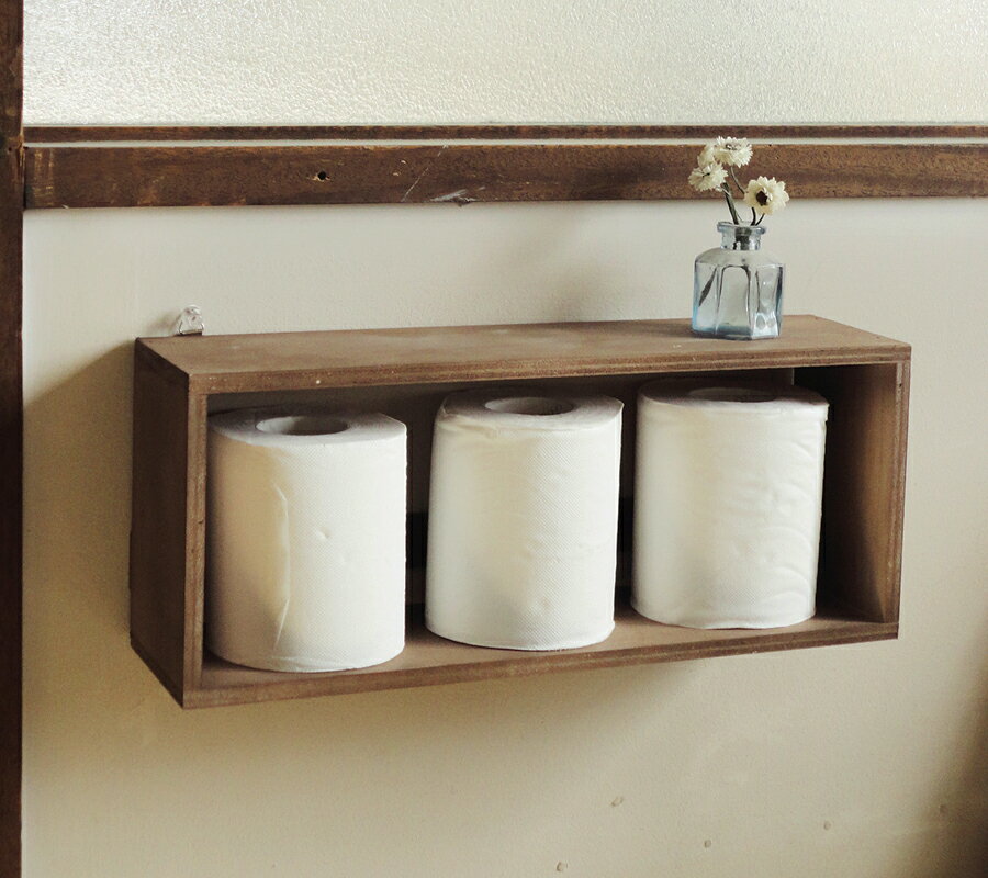 トイレットペーパーがちょうど3個並ぶサイズ。
