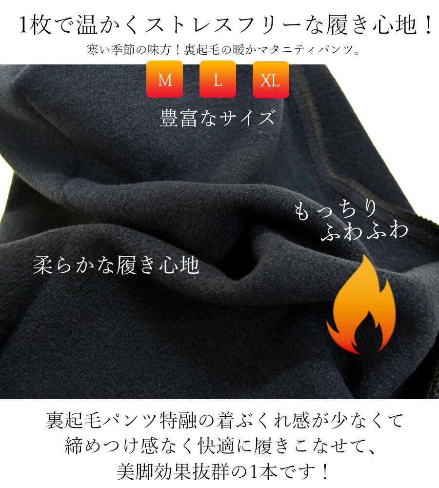 裏起毛パンツ特融の着ぶくれ感が少なくて 締めつけ感なく快適に履きこなせて、美脚効果抜群の1本です! 妊娠中のお腹をすっぽりと優しく包む伸びの良いウエストで、締め付け感がなくストレスフリー。